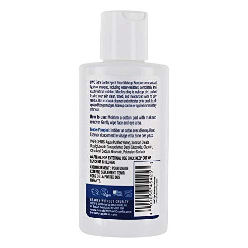 BWC Extra Gentle Eye Make-Up Remover with herbal extracts and vegetable glycerin gently removes all types of make-up, including water-resistant, completely and easily without irritation. Leaves no oily residue. Make-up can be reapplied immediately after use.