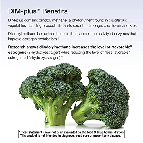 Enhanced Absorption* Protectamins Vegetables DIM-plus contains diindolylmethane, a phytonutrient found in cruciferous vegetables including broccoli, Brussels sprouts, cabbage, cauliflower, and kale. Diindolylmethane has unique benefits that support the activity of enzymes that improve estrogen metabolism.* Research shows diindolylmethane increases the level of “favorable” estrogens (2-hydroxyestrogen) while reducing the level of “less favorable” estrogens (16-hydroxyestrogen).