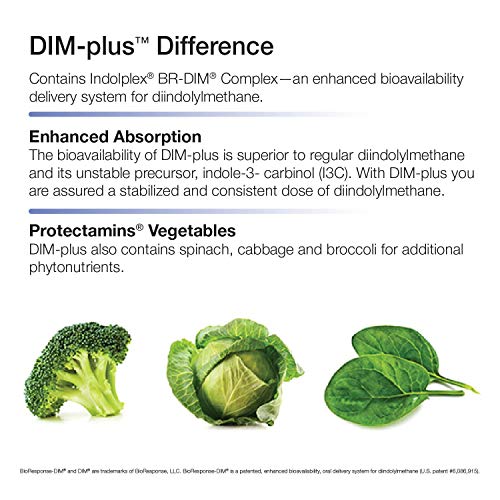 DIM-PLUS DIFFERENCE. Contains Indolplex BR-DIM Complex, an enhanced bioavailability delivery system for diindolylmethane, a phytonutrient found in cruciferous vegetables including broccoli, Brussels sprouts, cabbage, cauliflower, and kale.